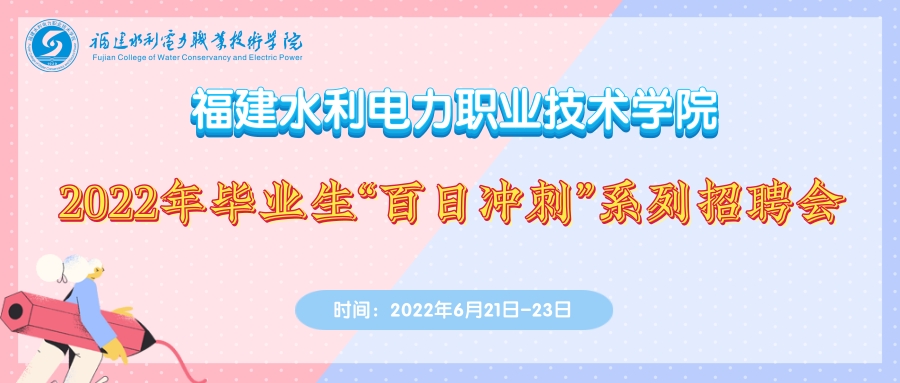 为贯彻落实党中央、国务院关于“稳就业”“保就业”工作重要决策部署,搭建各用人单位与毕业生双向选择平台,促进毕业生多渠道、高质量、更充分就业,结合我院疫情防控要求和工作部署,经研究,定于6月21日-23日举办“福建水利电力职业技术学院2022年毕业生‘百日冲刺’系列招聘会”,诚邀各用人单位参加,现将有关事项告知如下。