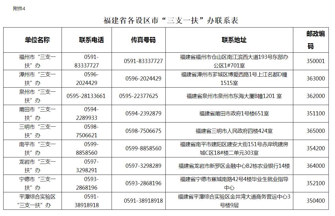 4.福建省各设区市“三支一扶”办联系表
