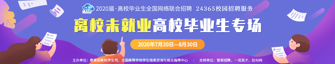7月20日,教育部“24365校园招聘服务”平台联合智联招聘、拉勾网、一览英才网共同推出“离校未就业毕业生专场招聘”活动,为毕业生就业提供不断线服务。