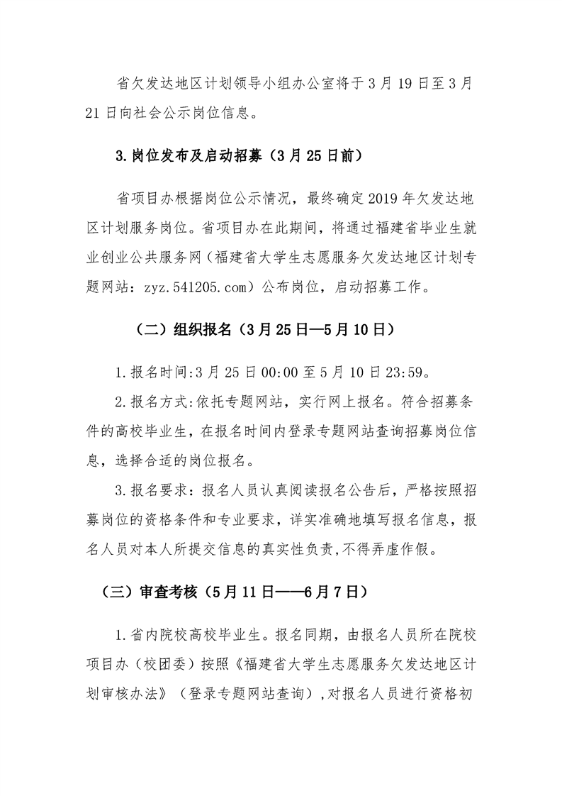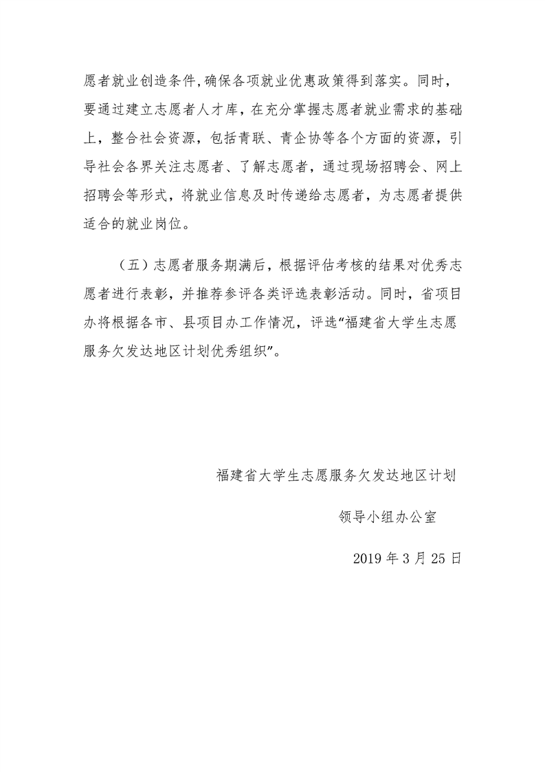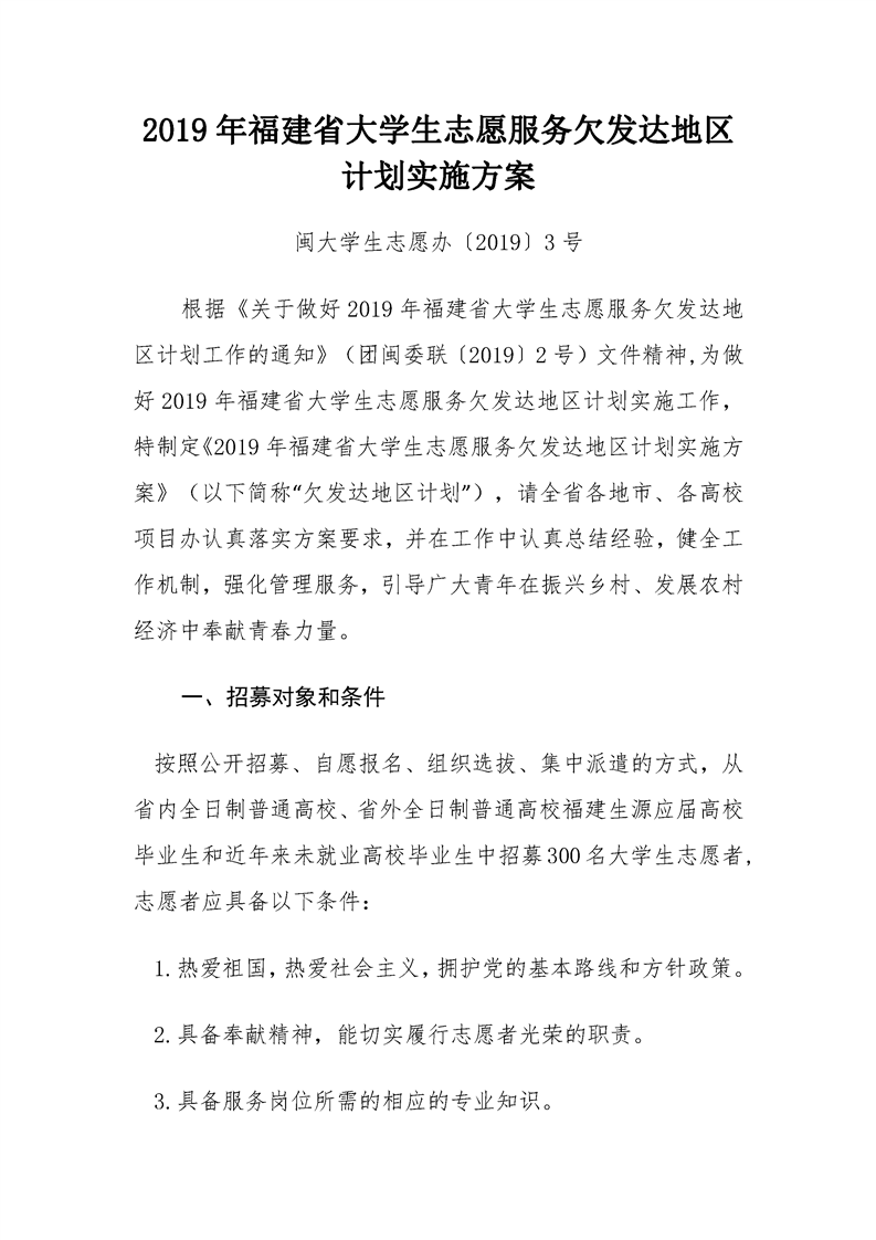 2019年福建省大学生志愿服务欠发达地区计划实施方案