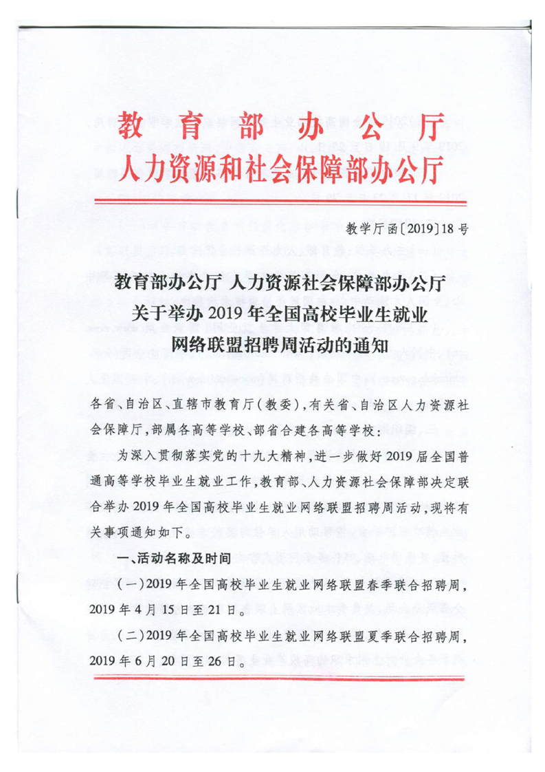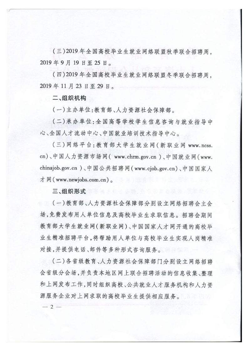 2019年全国高校毕业生就业网络联盟夏季联合招聘周活动时间:2019年6月20日-6月26日