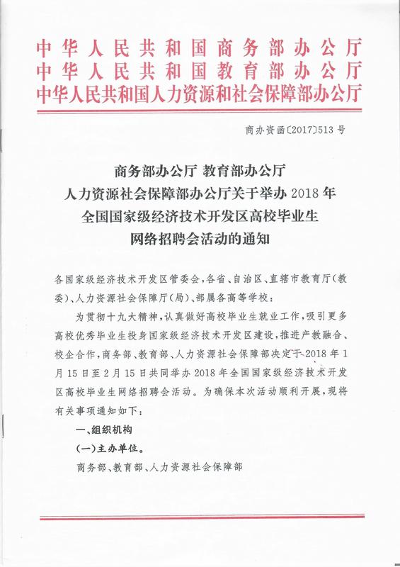 “2018年全国国家级经济技术开发区高校毕业生网络招聘会”活动网址链接:http://www.ncss.org.cn/wlzph/jjjskfqzph/