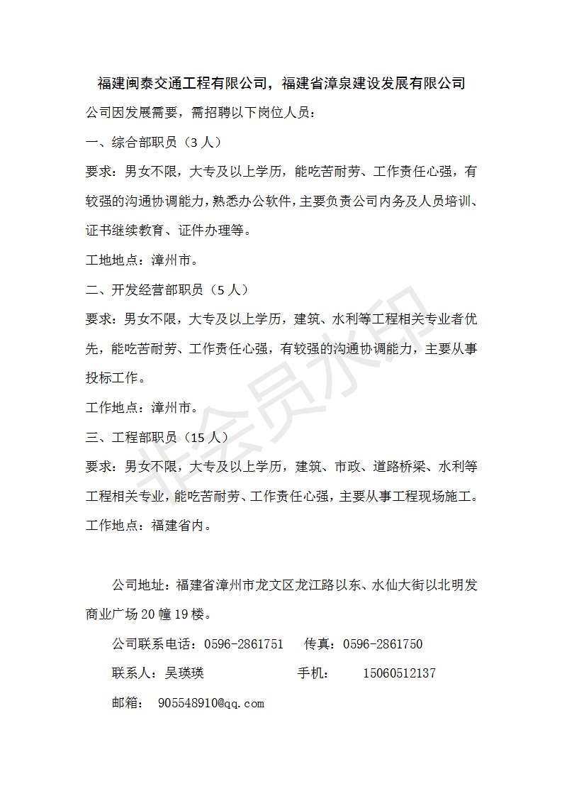 福建闽泰交通工程有限公司2019年招聘简章
