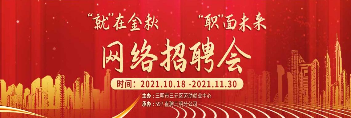 三明市三元区2021年秋季网络招聘会网址链接:https://sm.597.com/wlzph/index.html?id=35