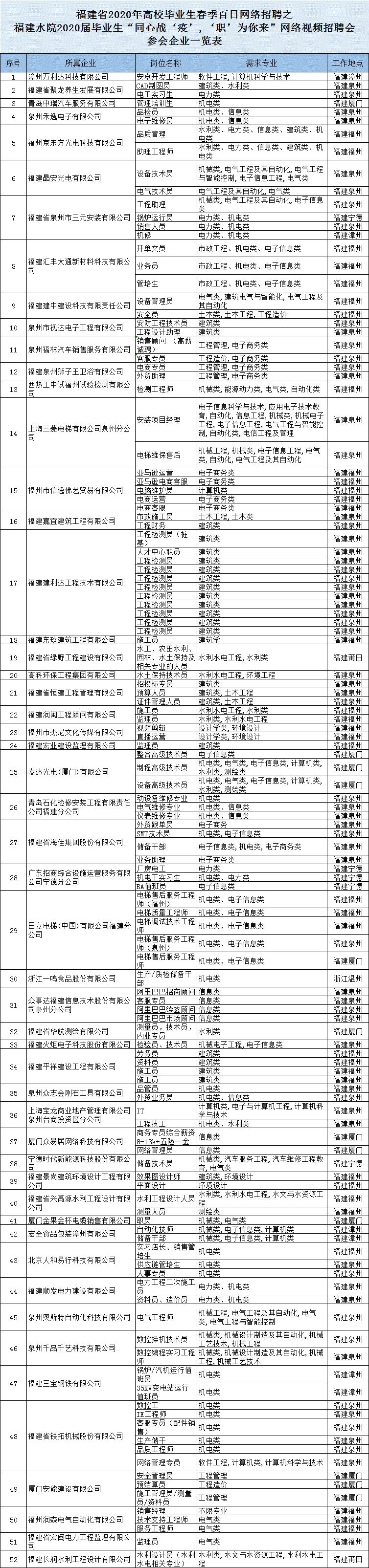 2020年3月16日9:00至20日20:00,福建水利电力职业技术学院2020届毕业生“同心战‘疫’,‘职’为你来”网络视频招聘会将在福建省毕业生就业创业公共服务网-“云招聘”网络视频面试招聘平台(http://220.160.52.58/fjbys/)正式开启!