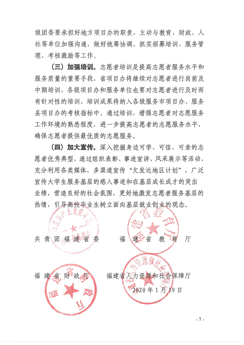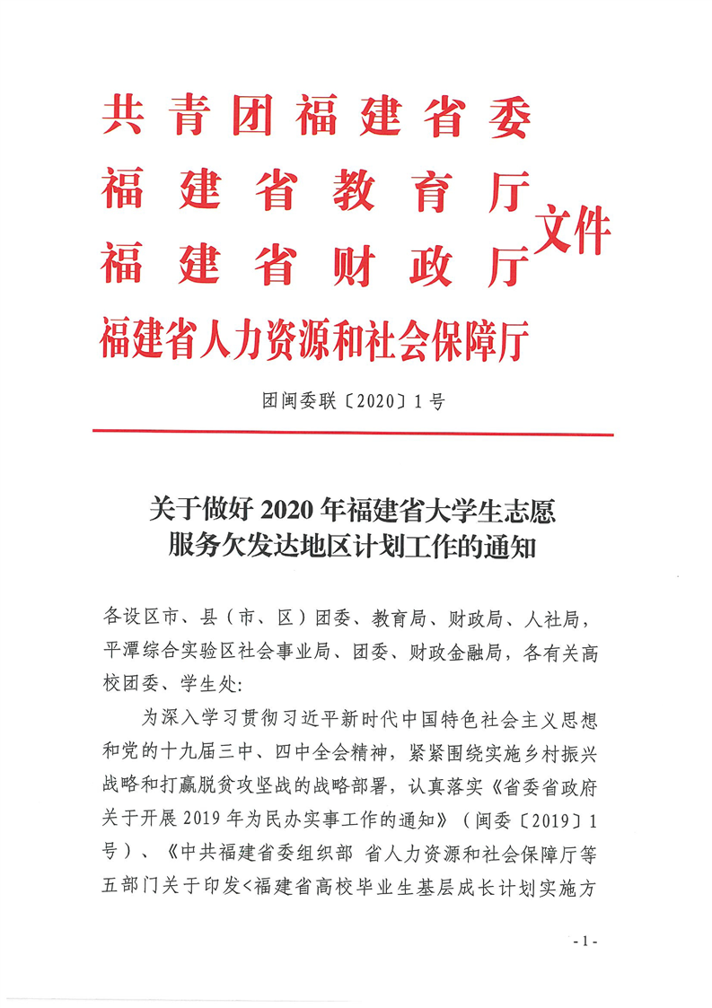 关于做好2020年福建省大学生志愿服务欠发达地区计划工作的通知