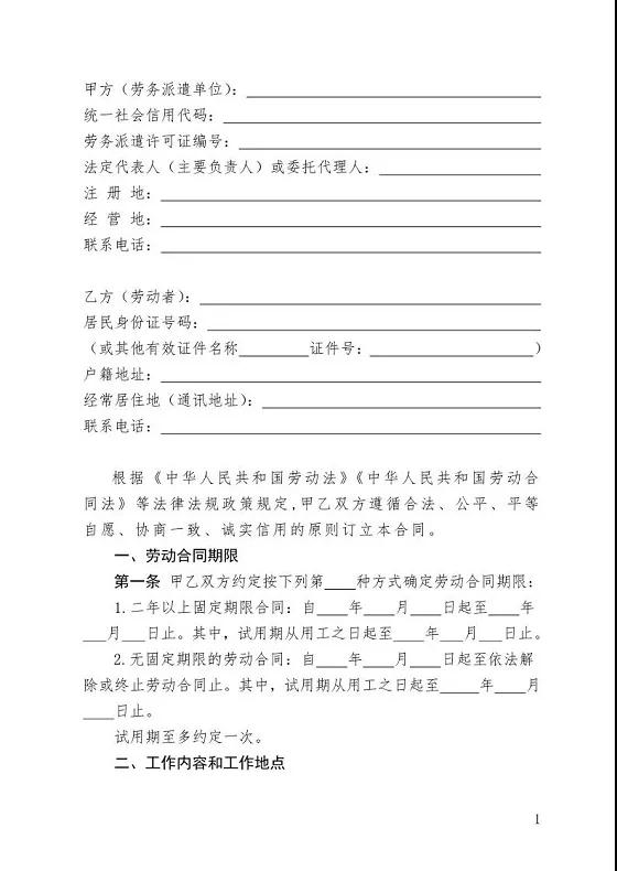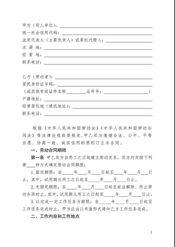 以下合同范本由人力资源社会保障部于2019年11月发布,根据《中华人民共和国劳动合同法》等法律法规和政策规定编制。