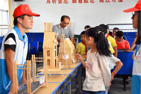 下午,师生志愿者们随即赶往槐南中心小学,为中心小学的小学生们展示系建筑模型作品展。志愿者们为好奇心的小学生们耐心又详细地讲解着各类建筑模型的空间结构和设计特点,向他们传达创新又环保的建设理念,现场互动良好热烈。
