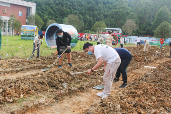 5月29日下午,学院建设工程实训馆北侧的建筑工程系劳动教育实践基地建设,正式拉开序幕。系党总支负责人陈燕晖老师强调了劳动教育的意义,和劳动过程的安全注意事项。系部教师党员和入党积极分子随后开展测量放样、砌筑围挡、铺设透水砖的工作,系主任林张纪老师给予专业方面的指导。师生们迅速投入到具体的施工工作中,用铁锹拍平菜畦间的走道,并铺垫细沙,搬运分割菜畦所用的砖头,并尝试砌筑菜地围挡,学习砖块组砌方法。在疫情防控期间参与劳动教育实践,既锻炼了身体素质增强免疫力,又在劳动中学习和实践了专业知识。