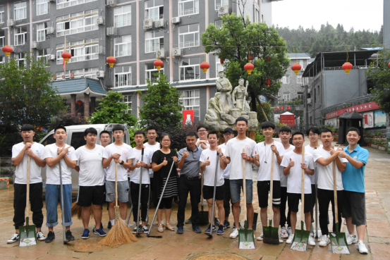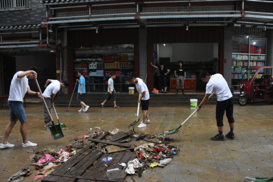 7月8日早上,洪水退去,洋口镇街道一片狼藉。邓婷婷老师带领学生分批行动,一队开展街道清理工作,二队开展救灾物资的搬运和分发给受灾群众,三队沿街宣传防震减灾知识,主要向村民们普及食品安全,防溺水,工地安全、灾后疾病预防等安全知识的宣传。