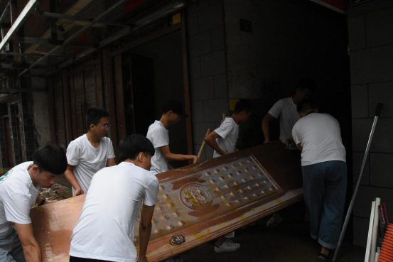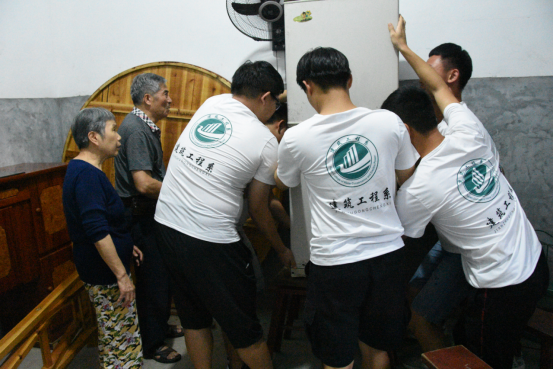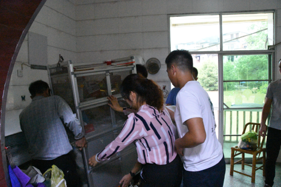 当地政府启动暴雨红色预警,“三下乡”师生们积极加入抗洪救灾队伍中。系团总支邓婷婷老师带领学生沿街巡防,挨家挨户询问当地村民是否需要帮助。同学们帮助受困老人把冰箱、洗衣机、木制家具等贵重家具和大件物品抬到楼房高处。同学们热情高涨,即使手被蹭破皮,肌肉抻伤,依然坚持着。经过师生的共同努力,富屯溪沿河大部分受困老人家中的家具财物都搬离了低洼地带。老人家们对同学们连声感谢,不停地夸赞:大学生就是棒!