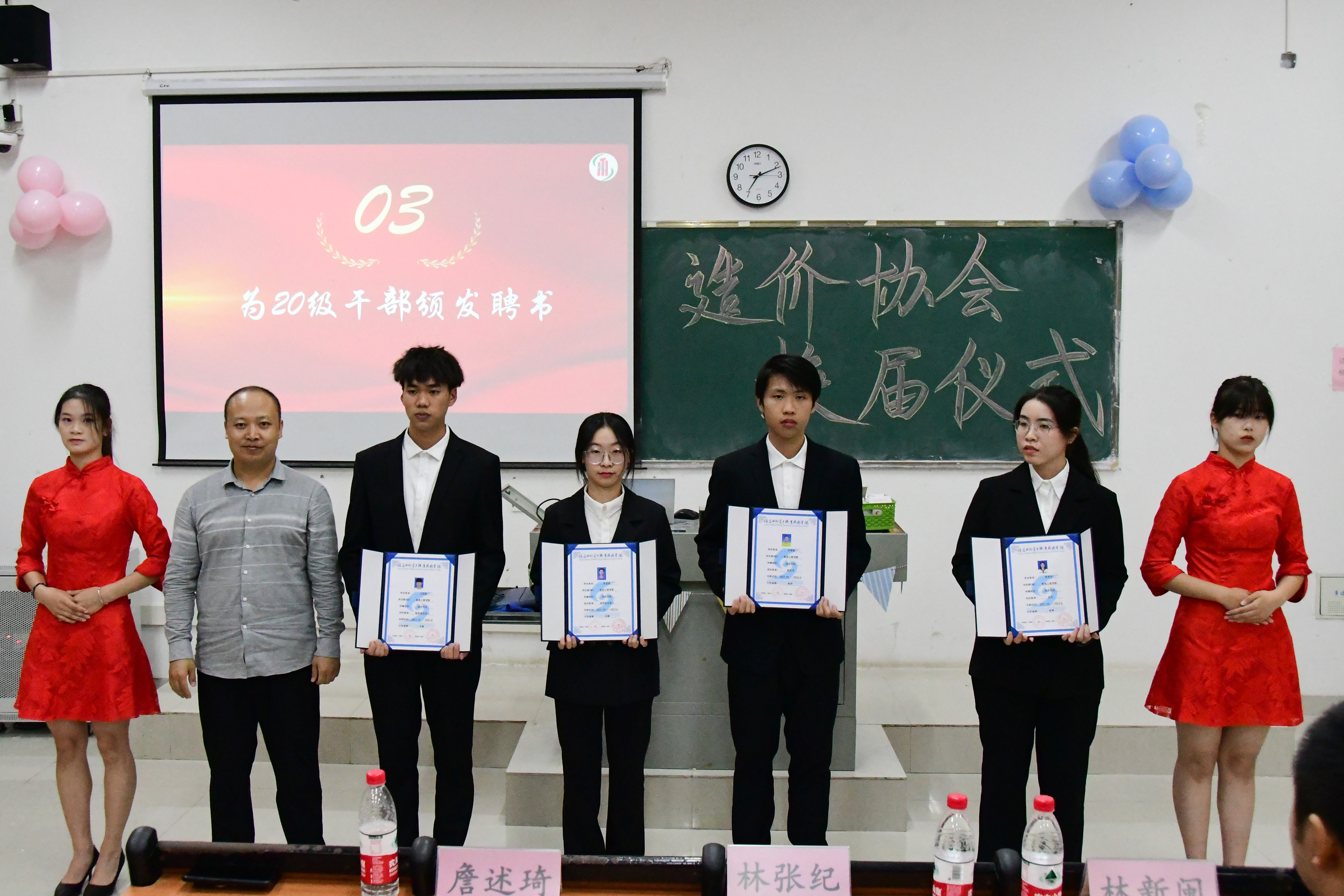 詹述琦为21届干部颁发聘书。勉励他们在今后的工作中不忘初心,努力奋进。