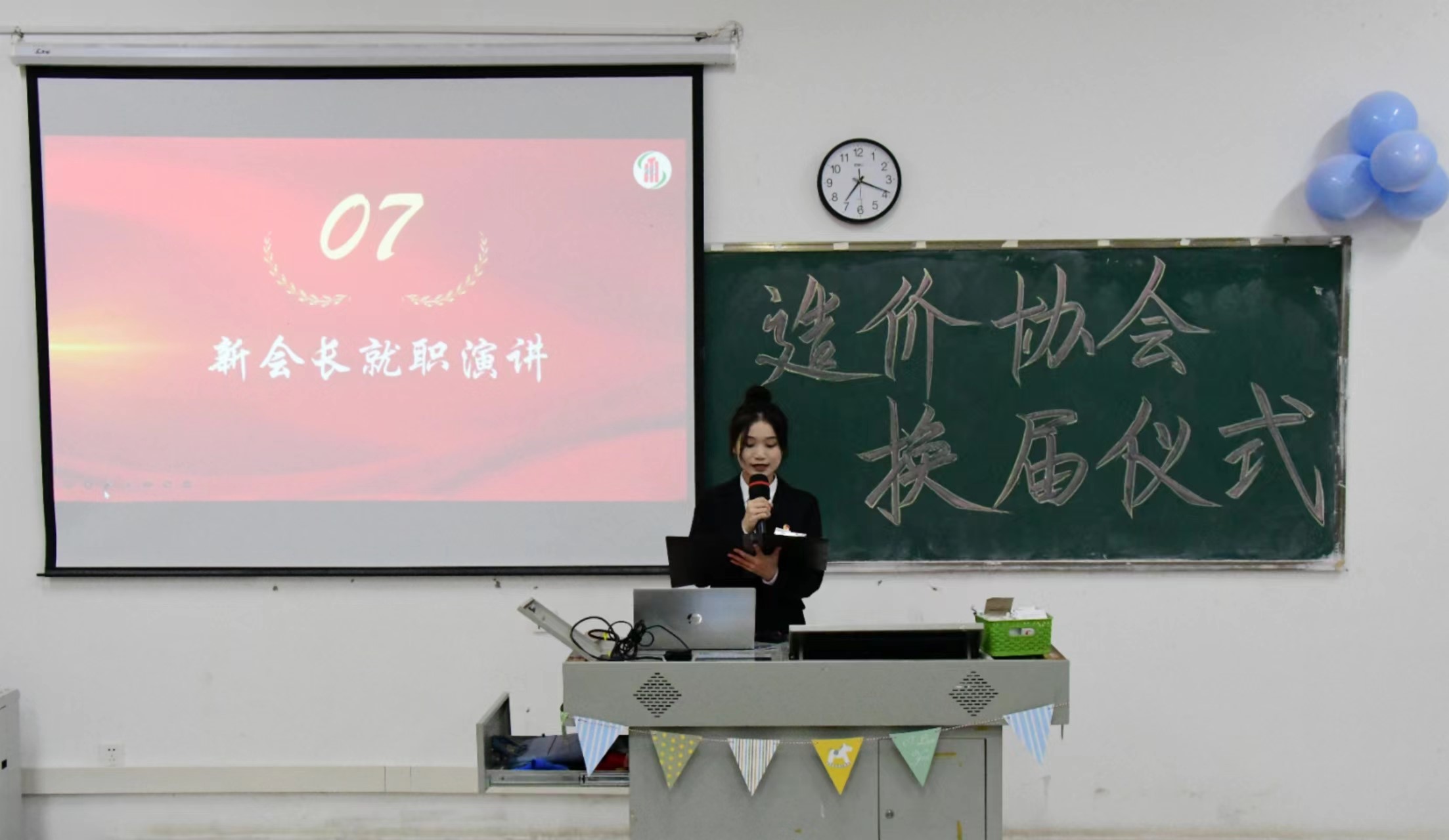 新任会长造价2132班张晓婷同学进行就职演讲,她表示在接下来的日子里,愿与其他协会干部紧密协作,攻坚克难,砥砺奋进,撸起袖子加油干,一起创造造价协会美好的明天!