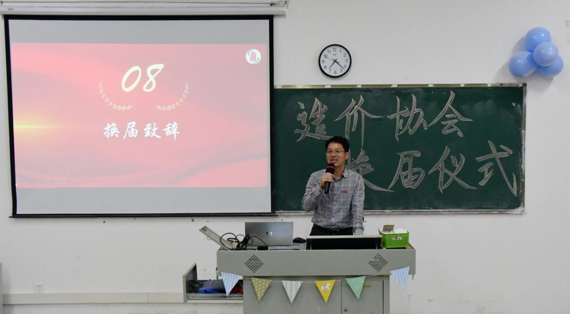 最后建筑工程学院院长(兼协会指导老师)林张纪做换届致辞,强调造价协会的成员要发扬建筑工程学院厚德、自强、创新的精神,自强求实,守正创新,争做有理想、敢担当、能吃苦、肯奋斗的新时代造价人。期望造价协会在新一届干部的带领下,团结奋进,再创新辉煌。