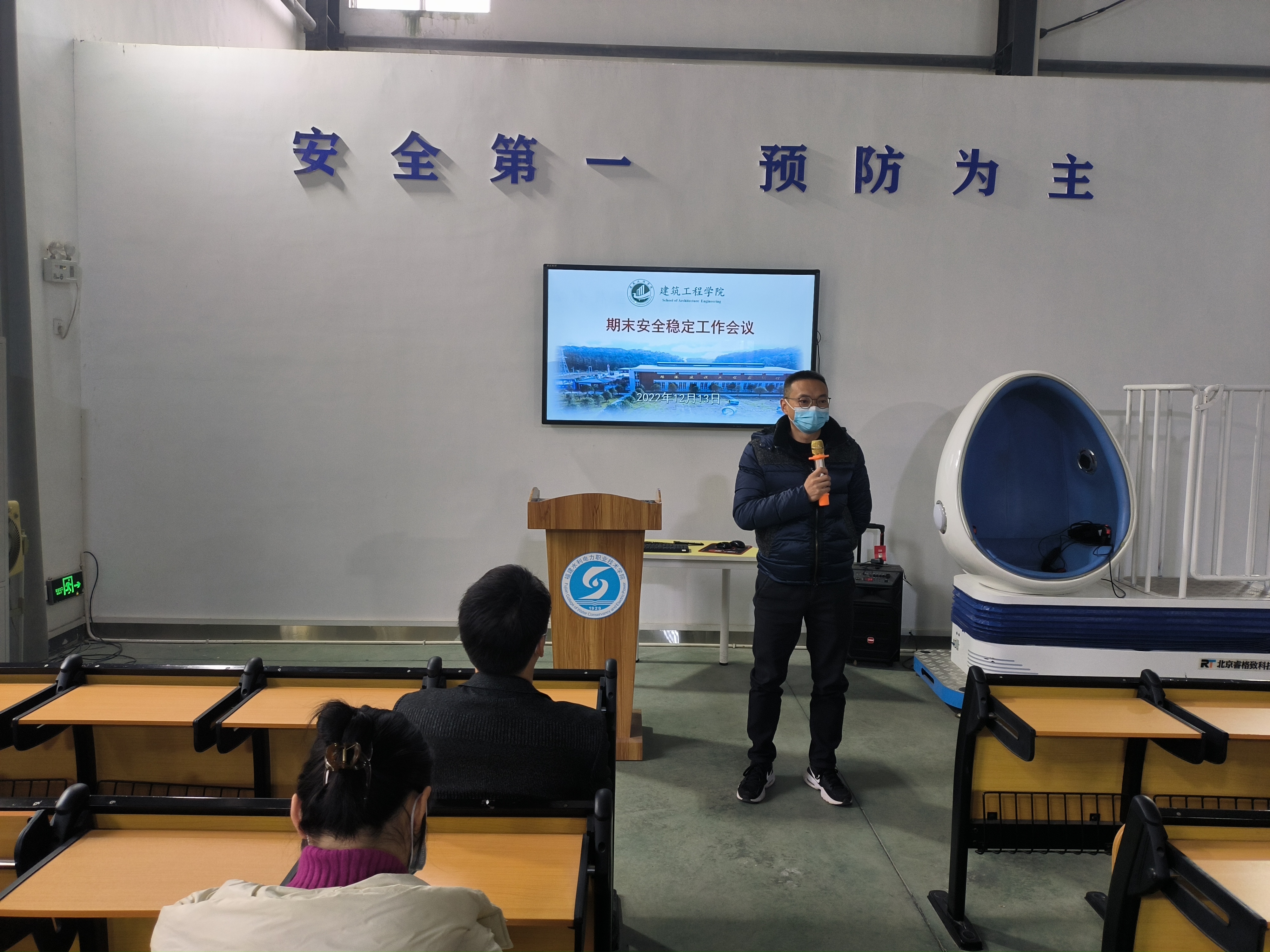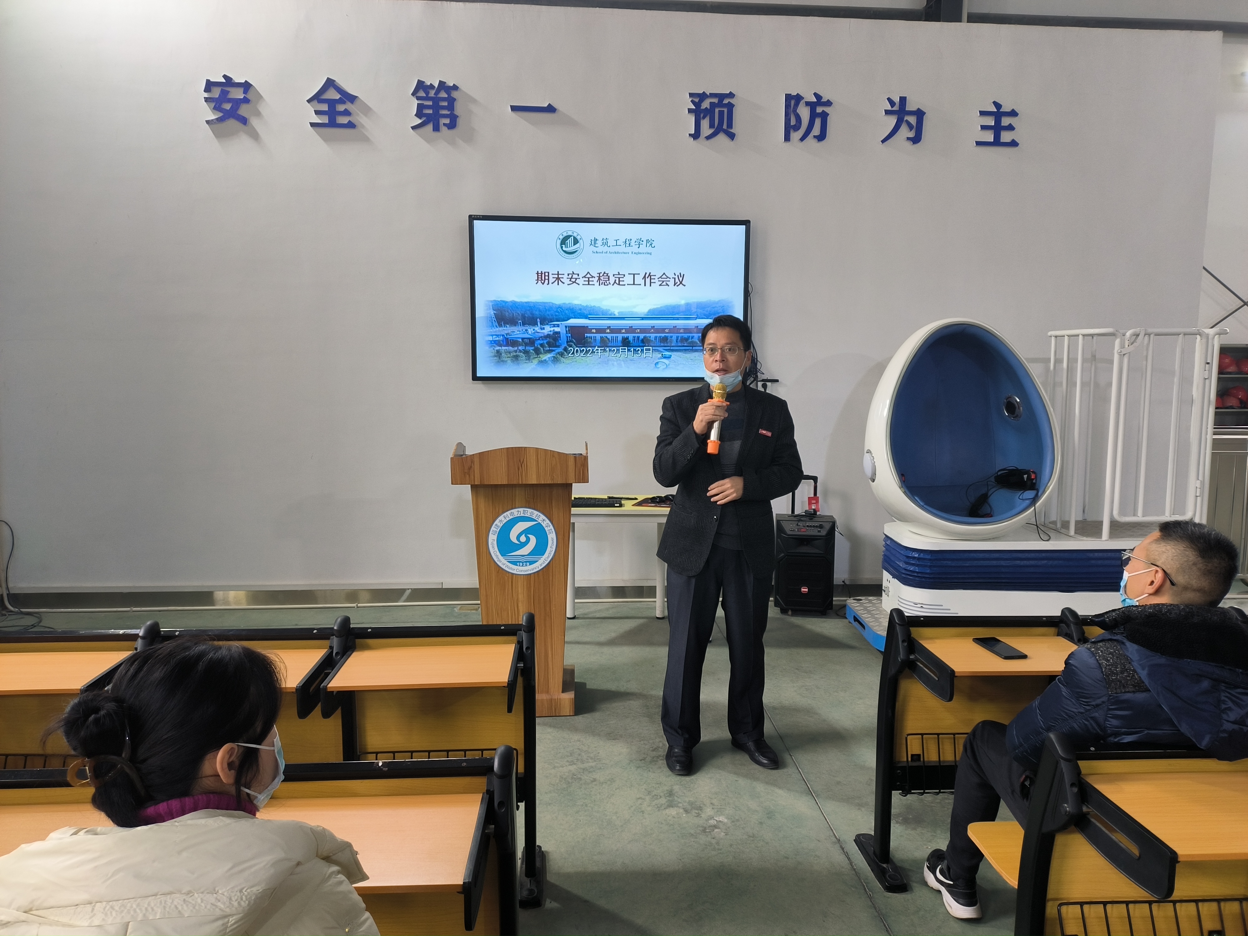 2022年12月13日下午,建筑工程学院召开期末安全稳定工作会议。会议由建筑工程学院党总支书记陈燕晖主持,全体教职工参加。