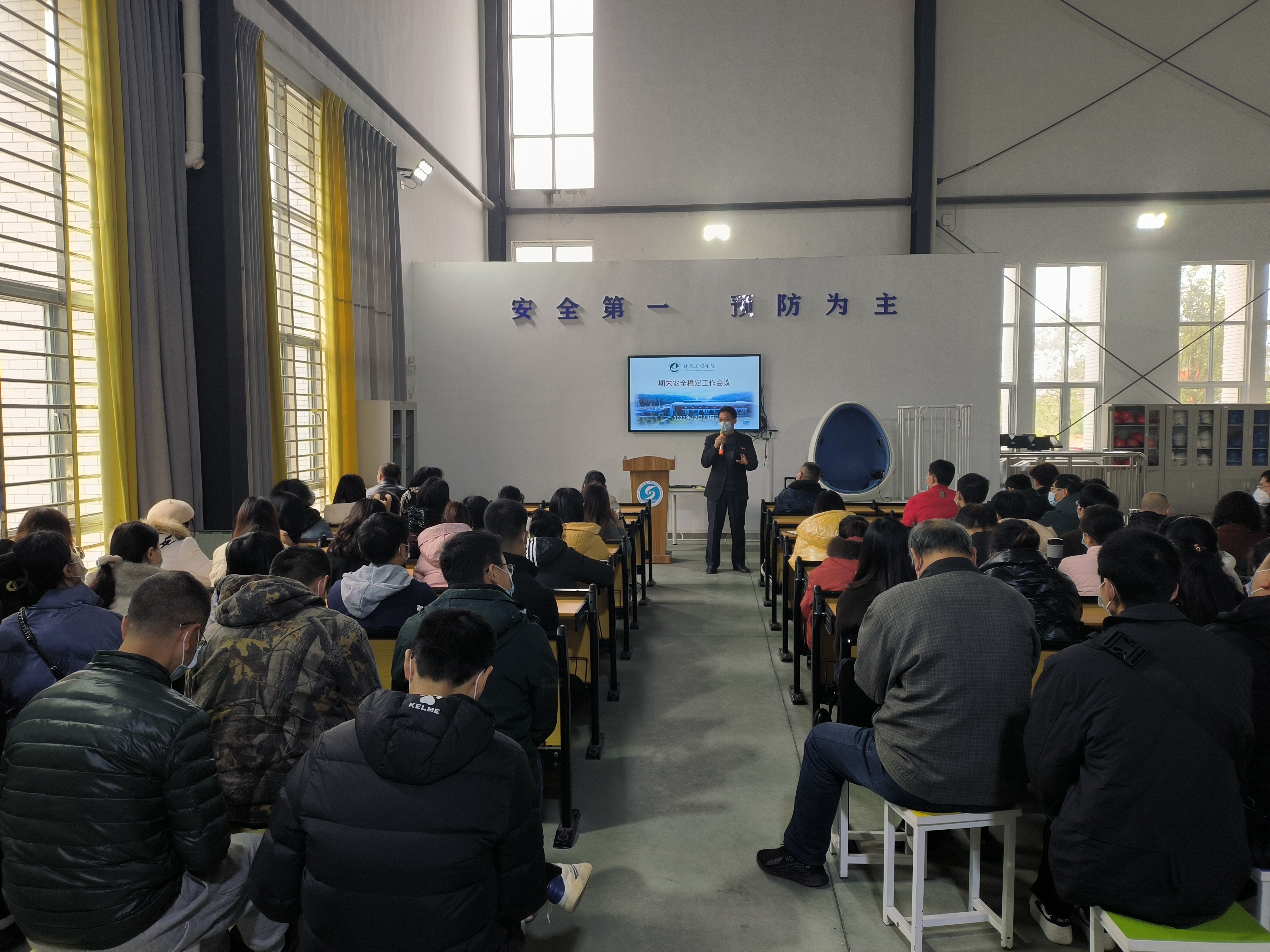 建筑工程学院院长林张纪对期末安全稳定工作做了部署,要求教职工要清醒认识当前安全稳定形势,始终把安全稳定工作作为头等大事抓紧抓细抓实。各教研室及实训场所对照《重大风险隐患排查和防范化解工作》全面开展安全隐患自查自纠,加强安全教育,坚决消除安全隐患。