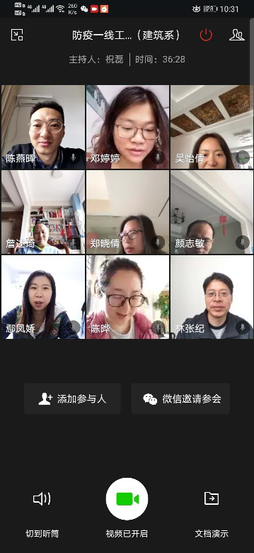 3月2日,建筑工程系通过视频会议的方式召开了慰问防疫一线人员家属座谈会。系党政班子成员及防疫一线人员家属参加了会议,会议由系党总支副书记陈燕晖主持。