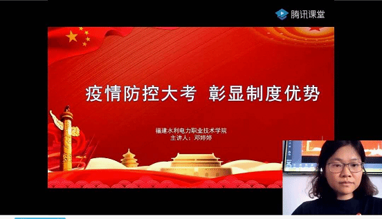 本次党课由建筑工程系党总支宣传委员邓婷婷主讲。她以《疫情防控大考 彰显制度优势》为题,深入浅出地分析了在疫情中体现的坚持党的集中统一领导、政令畅通,密切联系群众、高效社会动员,集中力量办大事、全国共走一盘棋的等中国特色社会主义制度优势,为大家进一步认清形势、坚定信心、发挥作用起到积极作用。