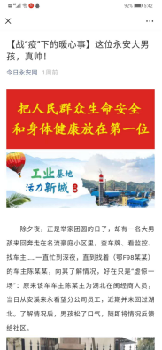 新冠疫情发生后,他积极参与永安市在新型冠状病毒疫情防控工作。他的身影出现在黄山社区的各个角落里、出现在社区疫情防控一线,跟着社区干部访线索、贴标语、发传单、喷消杀、送服务……他的事迹受到新福建客户端、三明市共青团、今日永安网、永安市燕北街道等媒体的报道。