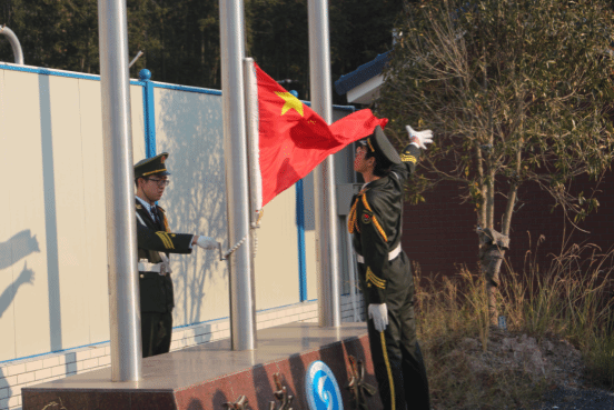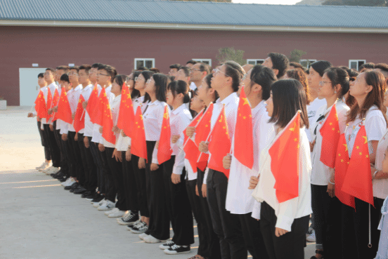 随着国歌响起,五星红旗徐徐升起,大家高唱国歌庄严地向国旗行注目礼,表达对党的衷心爱戴和对祖国的美好祝愿。