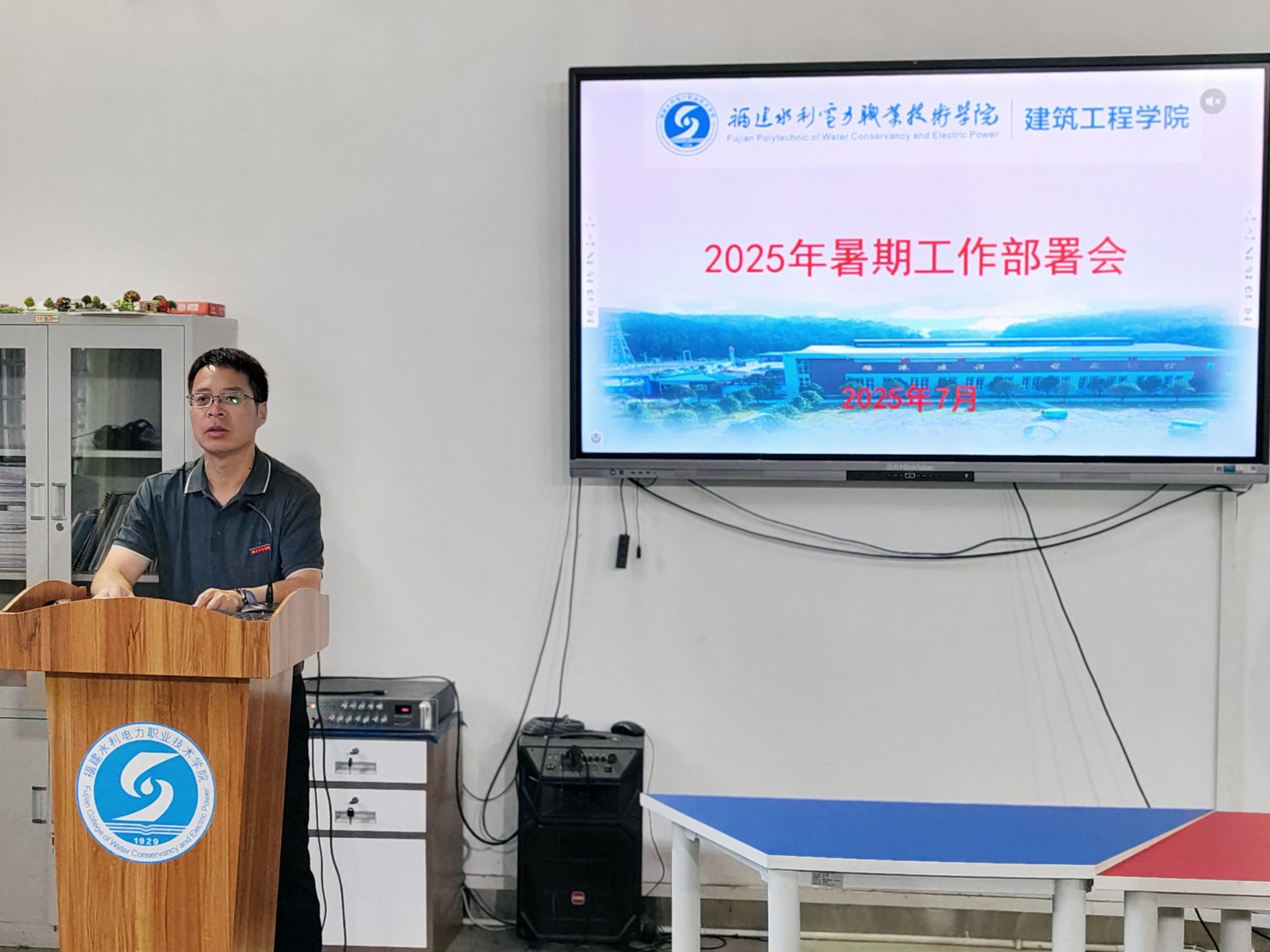 7 月 5 日上午,建筑工程学院召开 2025 年暑期工作布置会。本次会议旨在通报 2025 年上半年工作开展情况,并对暑期及下学期重点工作进行详细布置。会议由池其军主持,建筑工程学院全体教职工参会。