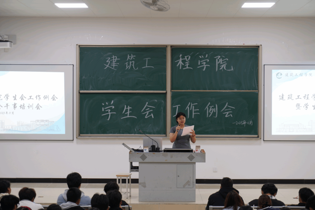 11月11日,建筑工程学院举办学生会工作例会暨干事培训会。学院团总支书记陈立圳、学生会各部门负责人及干事共计200余人参会。