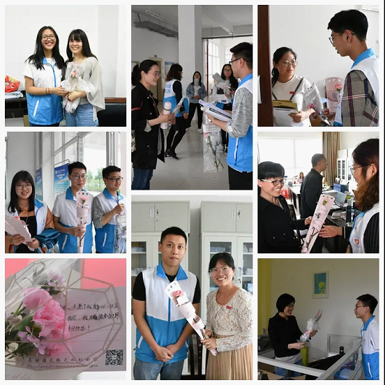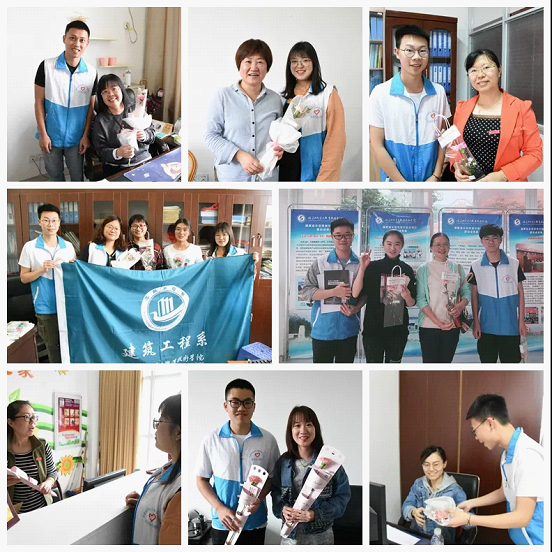 2019年5月10日,建筑工程系新一批党积极分子在邓婷婷、陈佳丽老师的带领下,于禹兴园7楼下,为刚刚上完课的女老师送上鲜花,并表达节日祝福。同学们为老师送上最真挚的母亲节祝福,感谢老师,一路上有您的教导,才不会迷失方向;一路上有您的关注,才更加的自信勇敢。世界上有一种爱,是最无私的爱。
