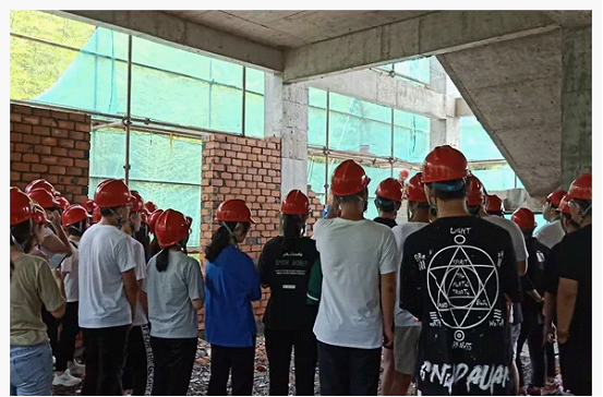 五月中旬,建筑工程系造价1832的同学们跟随林张纪老师前往学院的安全文明施工现场进行参观。