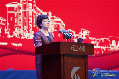 三明市人民政府副市长张文珍在大会上讲话。她代表中共三明市委、三明市人民政府,向学院建校90周年表示热烈祝贺,并希望学院能充分发挥三明职教的引领、示范作用,不断深化教育教学改革,加强内涵建设,培养更多的适用型人才,为建设新时代新三明做出更大的贡献。