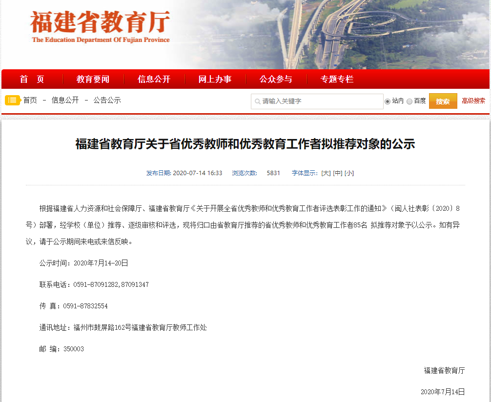 我院郑志萍教授获福建省优秀教师荣誉称号