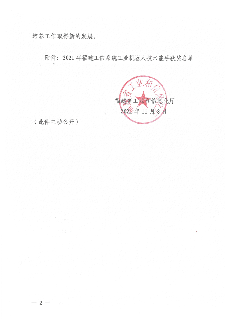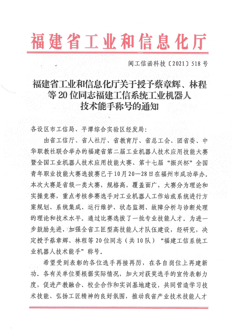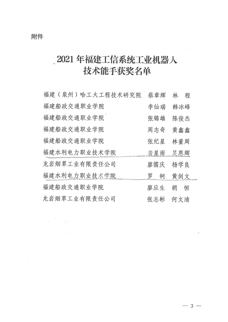 我院罗钶、黄剑文两位老师荣获2021年福建工信系统工业机器人技术能手称号
