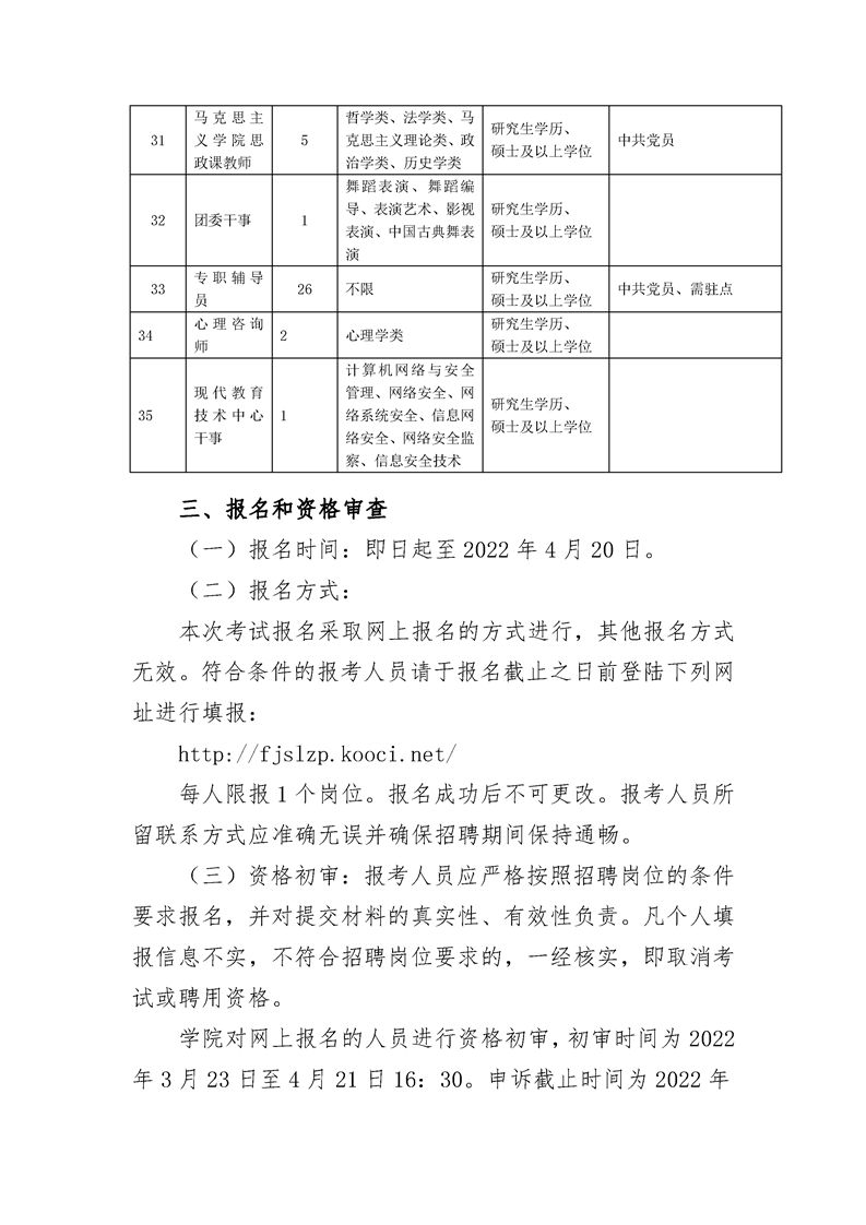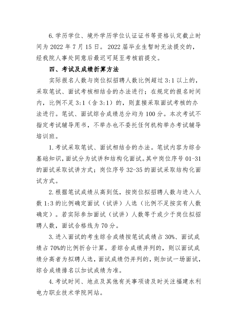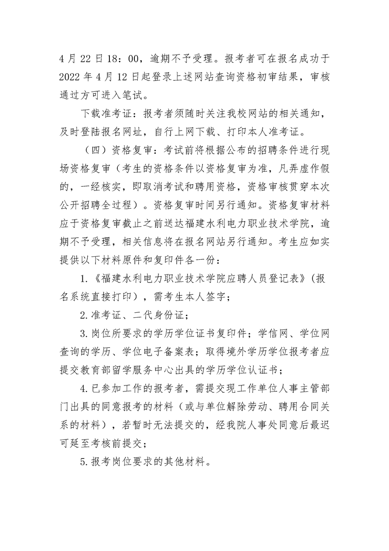 2022年福建水利电力职业技术学院公开招聘工作人员的方案