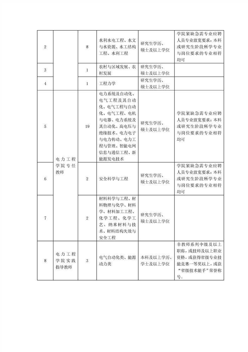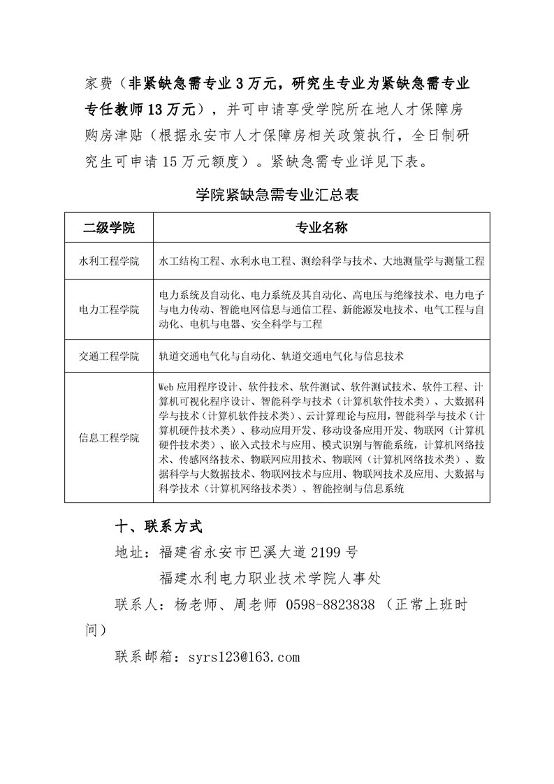 福建水利电力职业技术学院2023年师资招聘专业计划