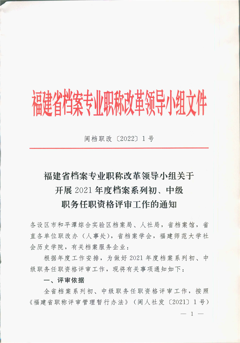 上一条: 福建省档案专业职称改革领导小组_福建省职称改革工作办公室关于开展2021年度档案系列副高级职务任职资格评审工作的通知
