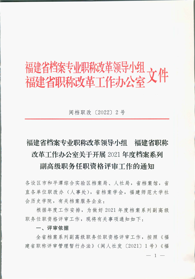 下一条: 福建省档案专业职称改革领导小组关于开展2021年度档案系列初、中级职务任职资格评审工作的通知