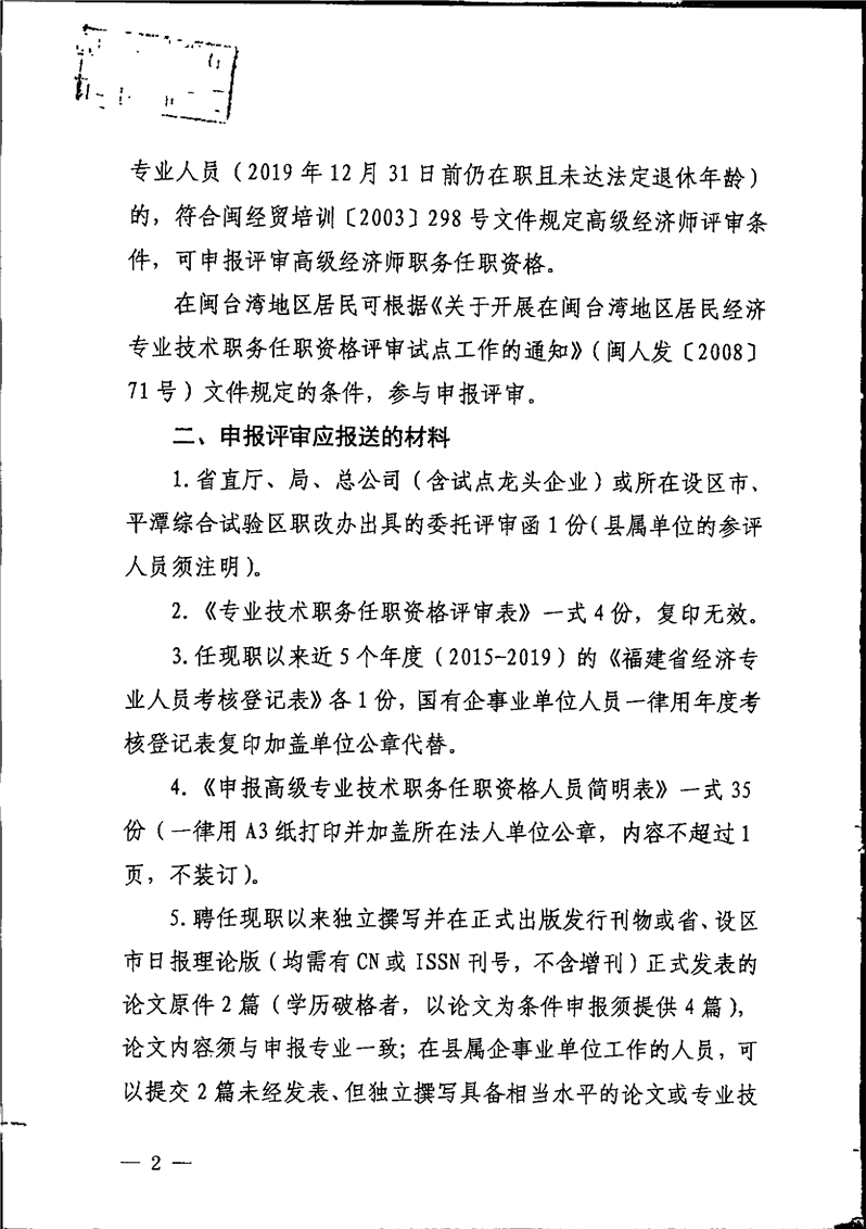 上一条: 关于报送福建省2019年度工程技术人员机械专业高级职务任职资格评审材料的通知