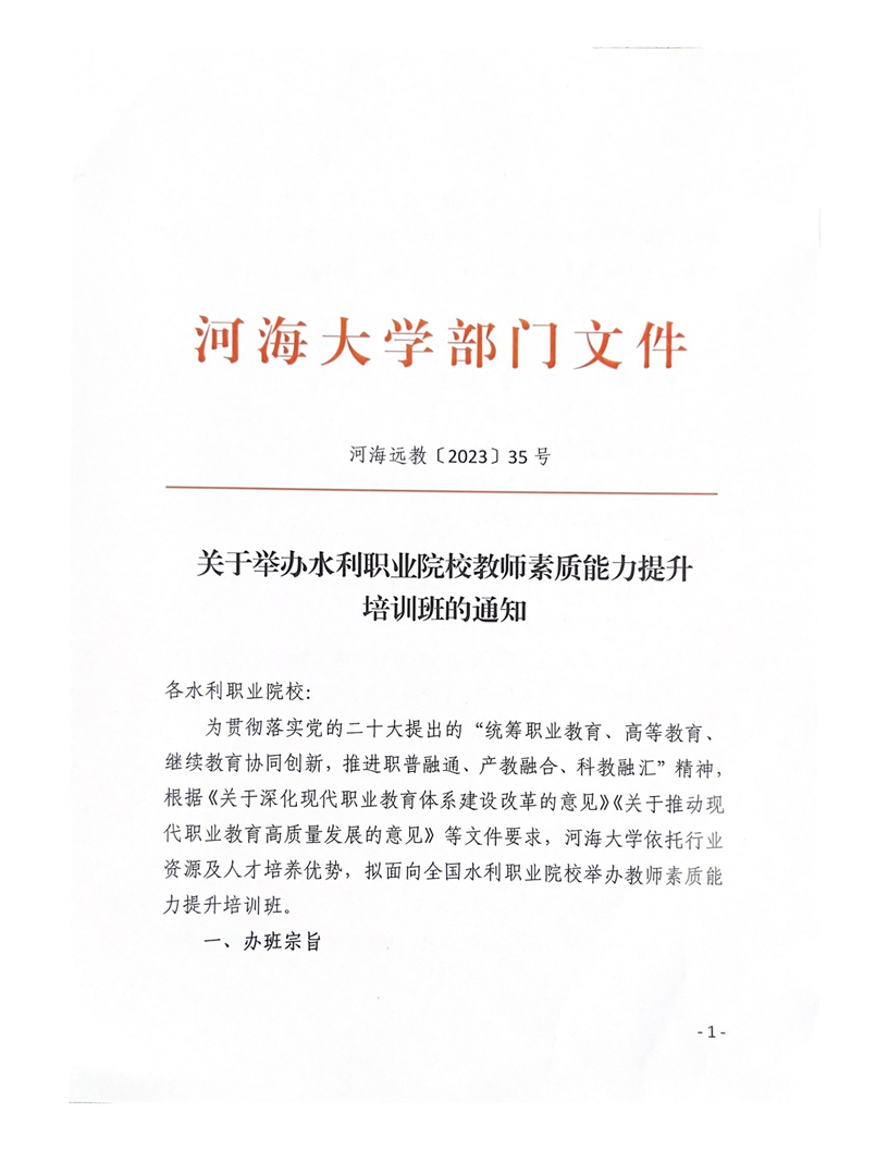 关于举办水利职业院校教师素质能力提升培训班的通知