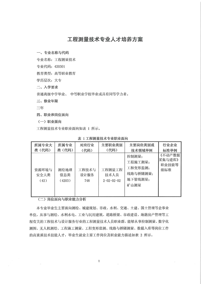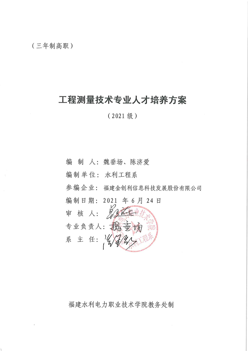 2021级工程测量技术专业人才培养方案