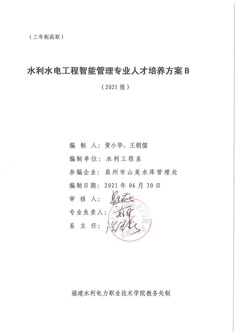 2021级水利水电工程智能管理专业人才培养方案B