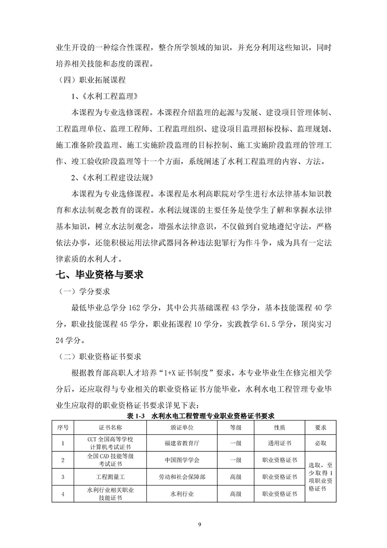 水利水电工程管理专业人才培养方案