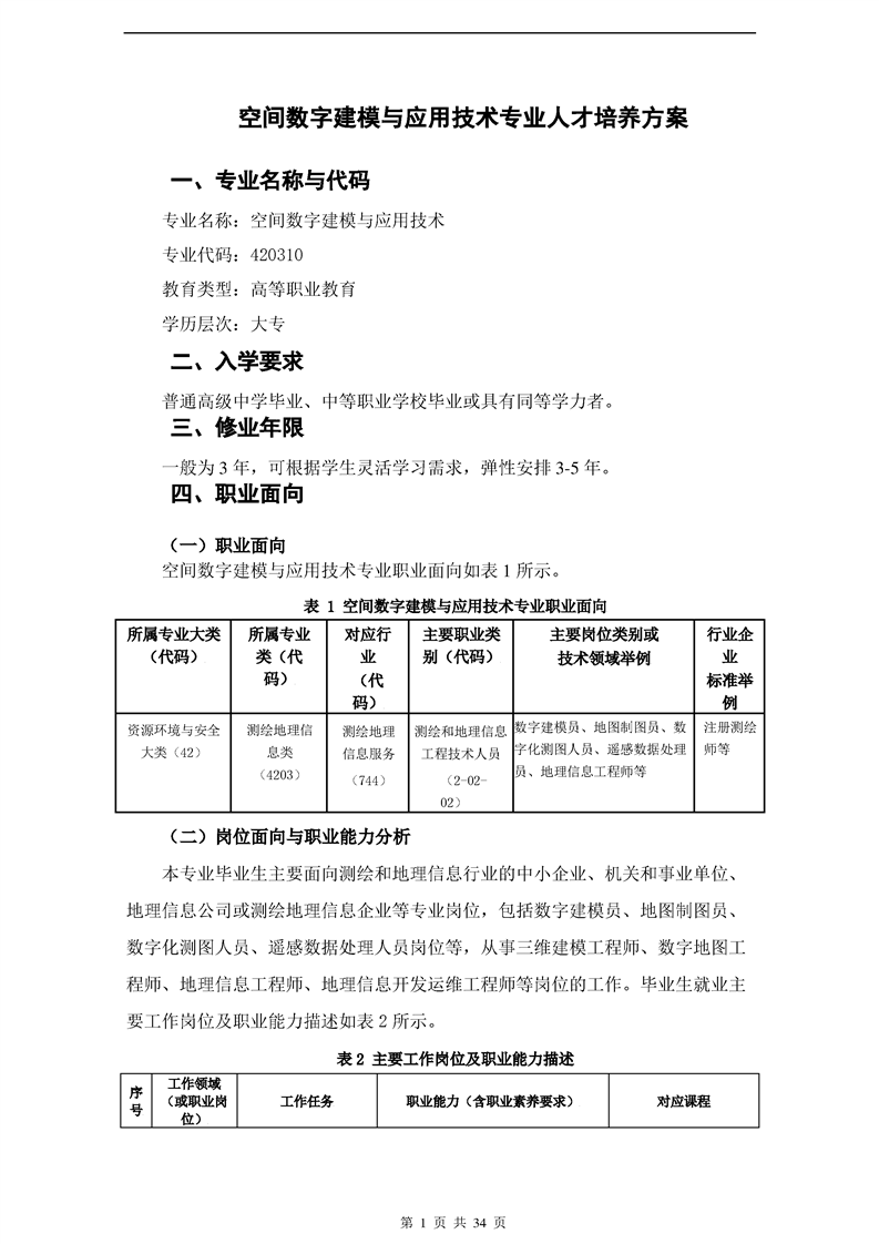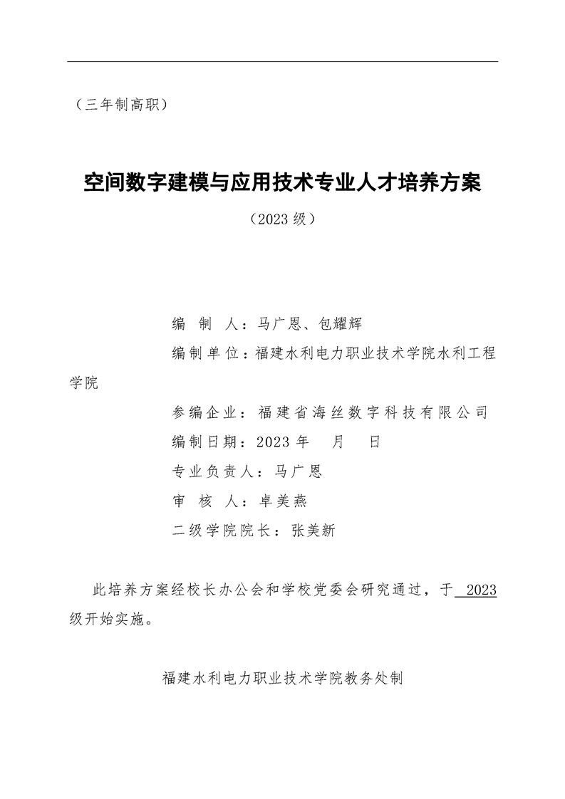 2023级空间数字建模与应用技术420310人才培养方案