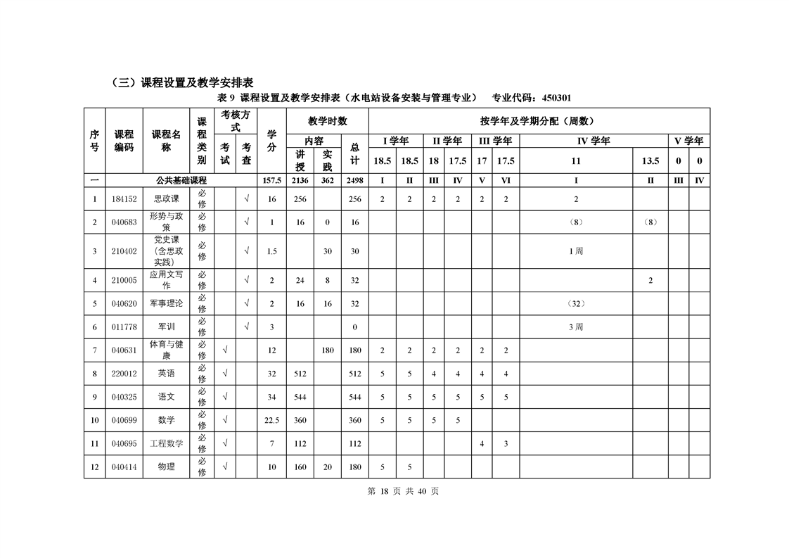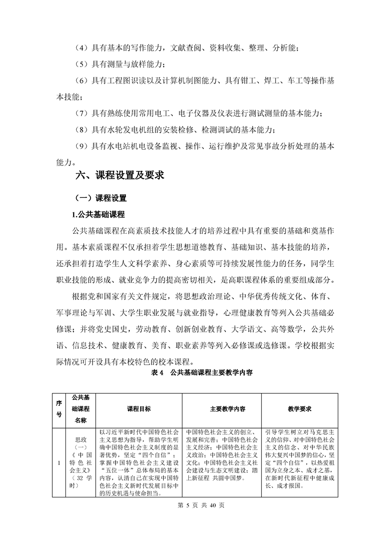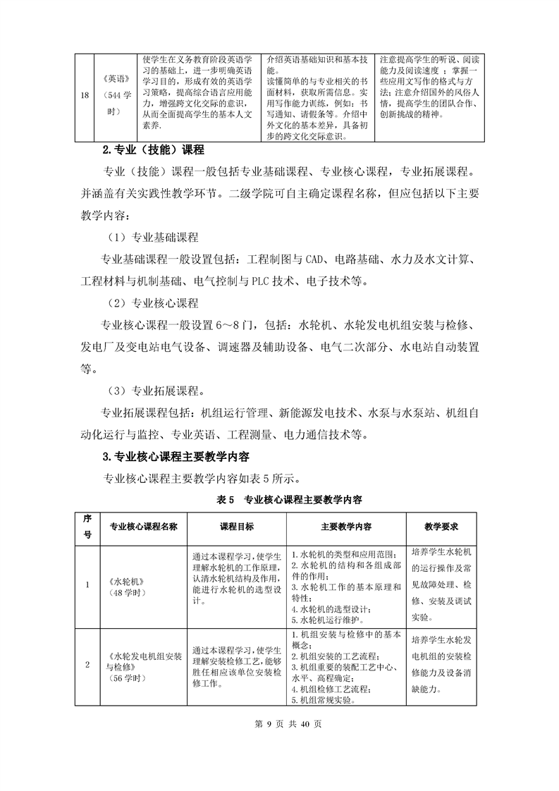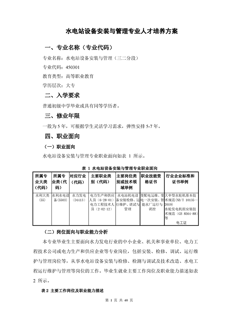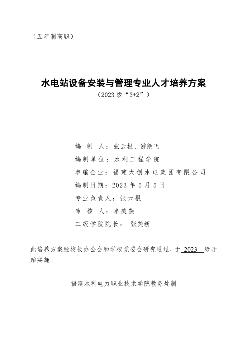 2023级水电站设备安装与管理专业450301人才培养方案(五年专)