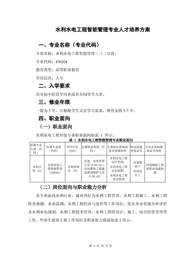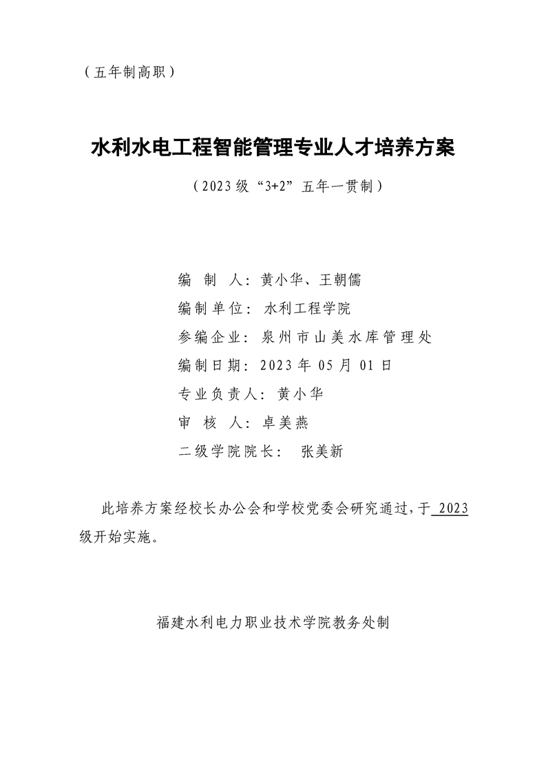 2023级水利水电工程智能管理专业450204人才培养方案(五年制)