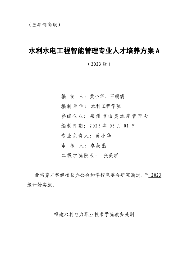 2023级水利水电工程智能管理专业450204人才培养方案A