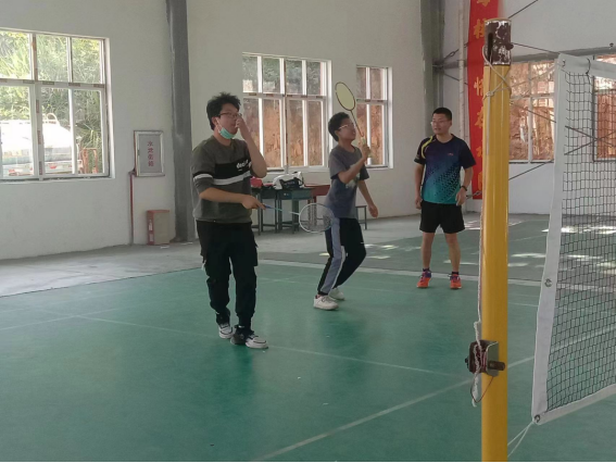 其次,克阻难于团结。在初步学会打羽毛球的诀窍后,范老师让大家进行三人组队协作与他互打PK。在这个练习环节中,三名同学总是因为相互冲撞或相互阻挡,而无法接住对方发来的球。这时,范老师向同学们指出问题所在:因为团队里没有合作,也没有明确的分工对每个区域进行防守,才会导致相互间的冲撞。同理,老师说道,在日常生活工作中很多事情也少不了相互协调合作,只有团结一心,有序分工协作才能战胜各种困难。就如我国在面临疫情大灾难时,全国人民在党和国家的坚强领导下,团结一心,众志成城,最后取得了抗疫的压倒性胜利。