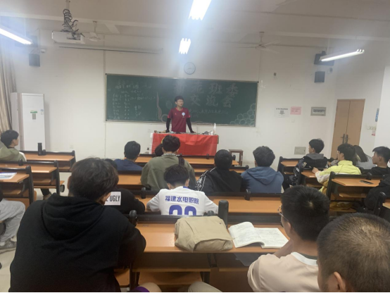 交流会伊始,水电2033班班长江国祥、团支书蔡文颖、副班长李铭辉作为班委代表通过自身经历分别就班集体活动、团支部建设、活动考勤等方面为切入点,分享了担任班级班干部期间的收获与心得体会。并介绍了每位班委对应的具体事务与工作任务。