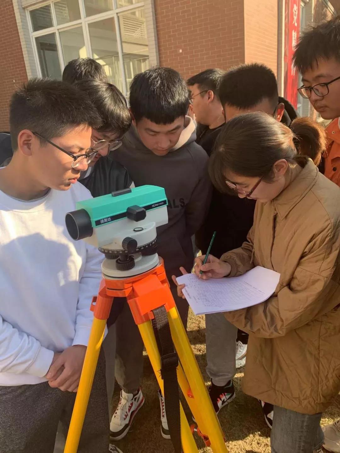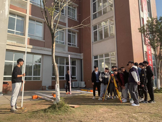 林波老师亲自现场示范,逐一对各同学们在测量仪器使用时出现的问题进行指导和答疑解惑,让同学们加深了对书本理论知识的理解,提高了他们学们的实操应用水平,进而提高了大家的问题处理能力和团队组织管理能力。林波老师强调,在测量时,大家要有耐心和毅力,要保证数据的准确性,测量数据的准确性是建筑施工安全的重要保障,不可掉以轻心。