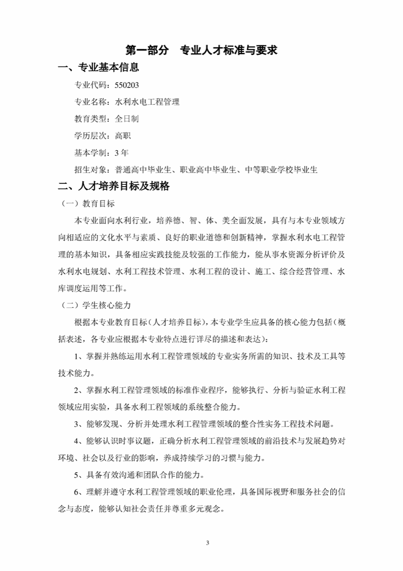 20级(三年专)水利水电工程管理专业人才培养方案(B班)