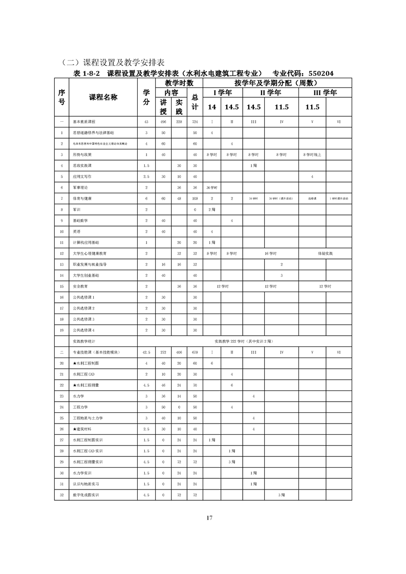 20级(三年专)水利水电建筑工程专业人才培养方案(B班)
