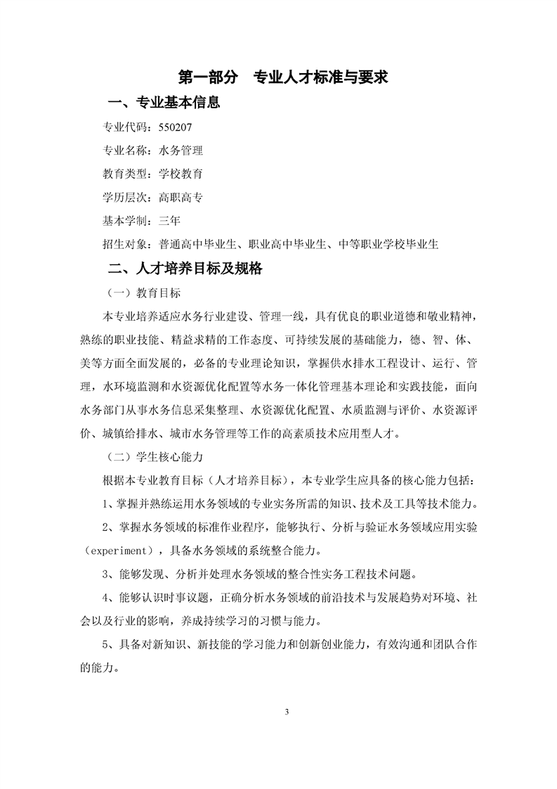 20级(三年专)水务管理专业人才培养方案